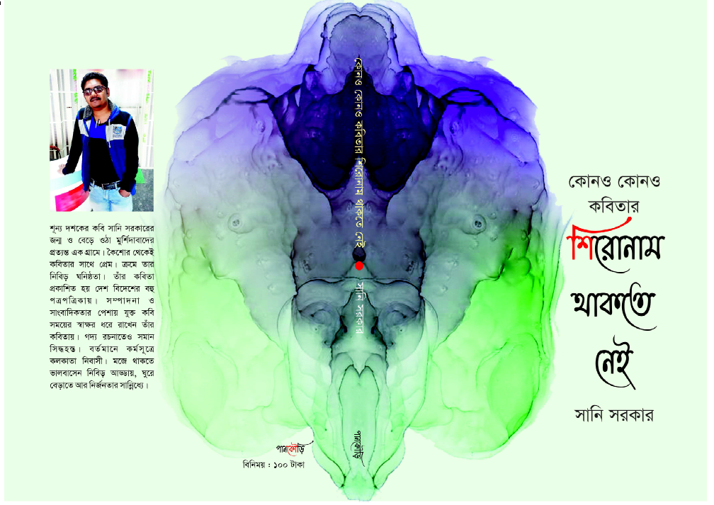 The title ” কোনও কোনও কবিতার শিরোনাম থাকতে নেই ” ( Some poems should be without any title) , once more is imbued with the painful overtones. Unfathomable, if you don’t go through meticulously. A sense of ‘silent adieu’ runs through the common thread of composition. Myriad emotions are juxtaposed, discovered by one, moving from one zone to another! A sheer pessimistic angle persists and you might break into a paroxysm of tears as you learn such immortal lines : ” একটু একটু করে ফুরিয়ে গেল রাতের কুসুম/ একটু একটু করে ফুরিয়ে যাবে ভোরের কুসুম”. Poems like ‘ব্রহ্ম মুহূর্ত’ ( The Eternal Moment), ‘চোখ’ ( The Eyes) are brief but inspiring the human life with a completely different taste and texture. “হরিণ পালিকা” ( The Tamed Doe) is a longish poem, divided into four parts. Each is different and not synonymous with one another. A multi hied range of feelings like amorous touch, whirlpool of questions, breaking like the ice and above all the ‘come round’ proposition works with intensity. After all, after every dark night, the dawn breaks, birds chirp and life loves to cherish the golden moments where flowers blossom and bees hum to collect nectar to signify the mystery of mother nature. Pretty interesting is “৭ ডিসেম্বর” (7 December). The title is catchy enough to draw the heed of the common place readers. “এর বেশী কিছু তো চাই না কেউ -ই) ” ( No one wants any thing more than this). Question might lurk at the corner of one’s mind. But surprisingly the poet turns and makes his statement a bit romantic as he utters, ” আসলে তুমি মানে আমি”, ( Actually we complement each other). As we move towards the concluding segment of this “introspective anthology” , the poem ” পর্যবেক্ষণ” (The Observation) beckons with delight. The dwindling image restores its balance indicates the status of equilibrium amid every quaky thought. ” শোক ও শ্লোকের মাঝে বাজেছে নূপুর তরঙ্গ ” (The anklet tingles amid appall and hymns) takes us to the world of Robert Browning where love and philosophy are inextricably blended to focus on the incorrigible optimism. This is not an exception either. The sound of anklet can be heard amid every iota of grief and chants. Only a poet of a very matured level can bring such a twist in his/ her tale to enthrall his /her audience.